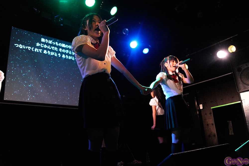 最後の挨拶ではありすの突然の涙にメンバーも驚く。「みいあと二人、メンバーが代わって、ワンマンライブをしてきて。」と会場もしんみり聞き入るが、「最初は全然(客席が)スカスカだったから…。」まで話すと言葉の雰囲気に少し笑いが起こる。