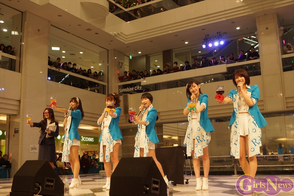 恒例のジュースで乾杯では、ぷりあでぃす玲奈さんが選んだ開運ジュースとして、宮崎由加さんはりんごジュース、金澤朋子さんはグレープジュース、高木紗友希さんはザクロジュース、宮本佳林さんは野菜ジュース、植村あかりさんはマンゴージュースを用意され、ヒット祈願の乾杯を行いました。