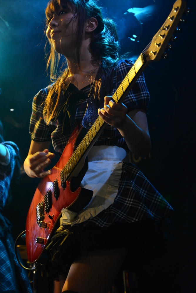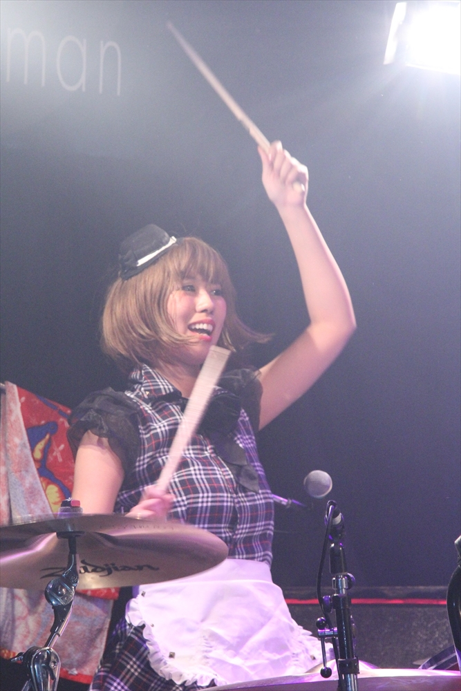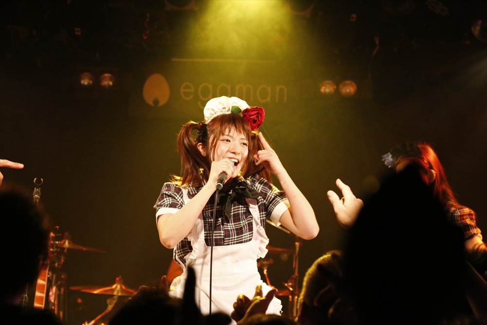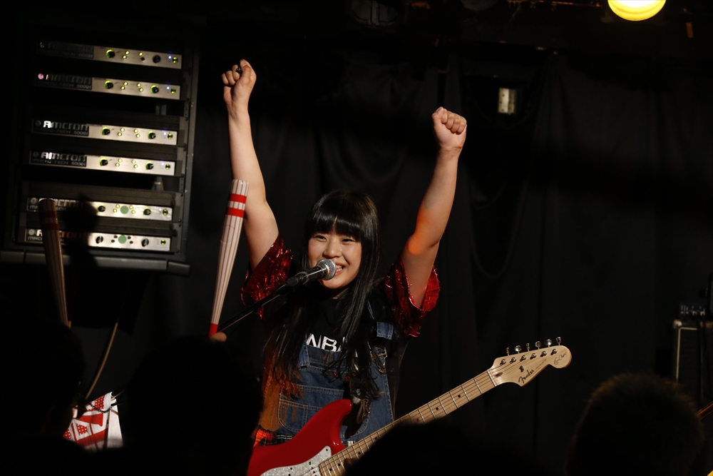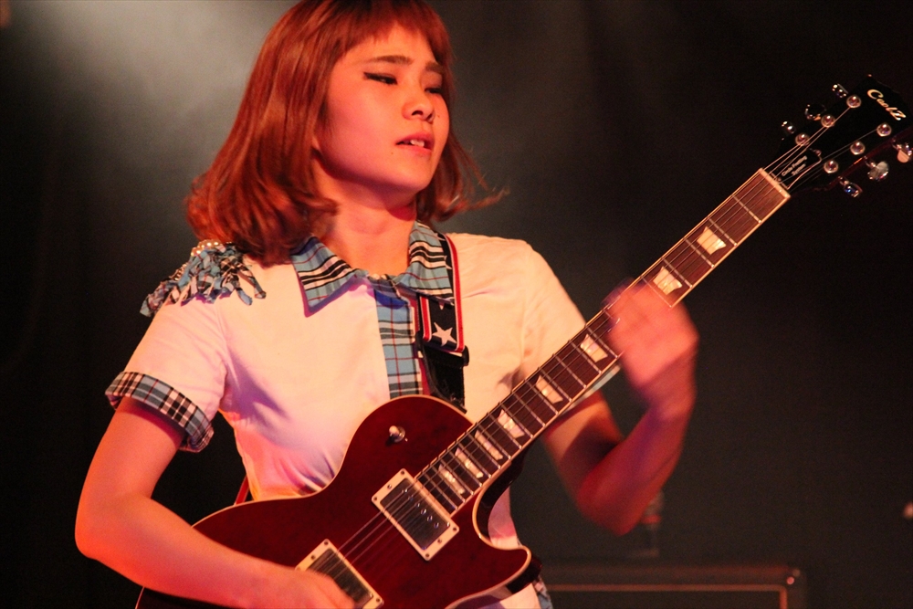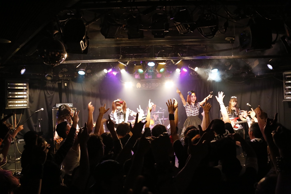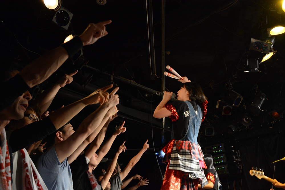 バンド/ダンスと2つのスタイルで活動している姫carat。彼女たちの音楽には、昭和の香りがほのかに漂っている。その音楽性へキュートでポップなパウダーをまぶし、カラフルな表情に様変えてゆくところが魅力だ。クールな香りも漂わせたロックンロールナンバー『ボディ・ロカビリー』や、荒々しく疾走する曲の上に歌謡メロな歌が絡みあう青春歌『ハイヒールキック』、GS&ガレージスタイルの歌と演奏が火を噴いた『恋のスパイダー』。会場中の人たちがタオル振りまわし熱狂した『クロブチメガネとベビードール』など、可愛さの中に隠し持った毒牙に噛まれ、熱狂に嬉しい眩暈を覚えていた。