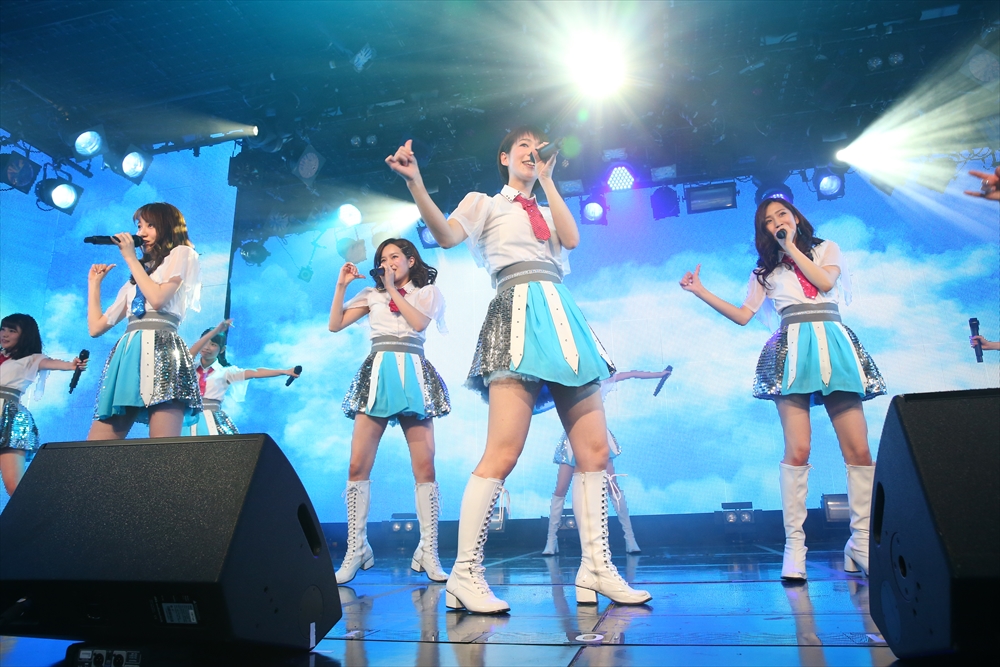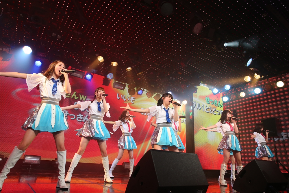 1曲目は『無条件☆幸福』から。関谷真由がホイッスルを鳴らし勢いよくスタートすると、メンバーも所狭しと会場を盛り上げる。