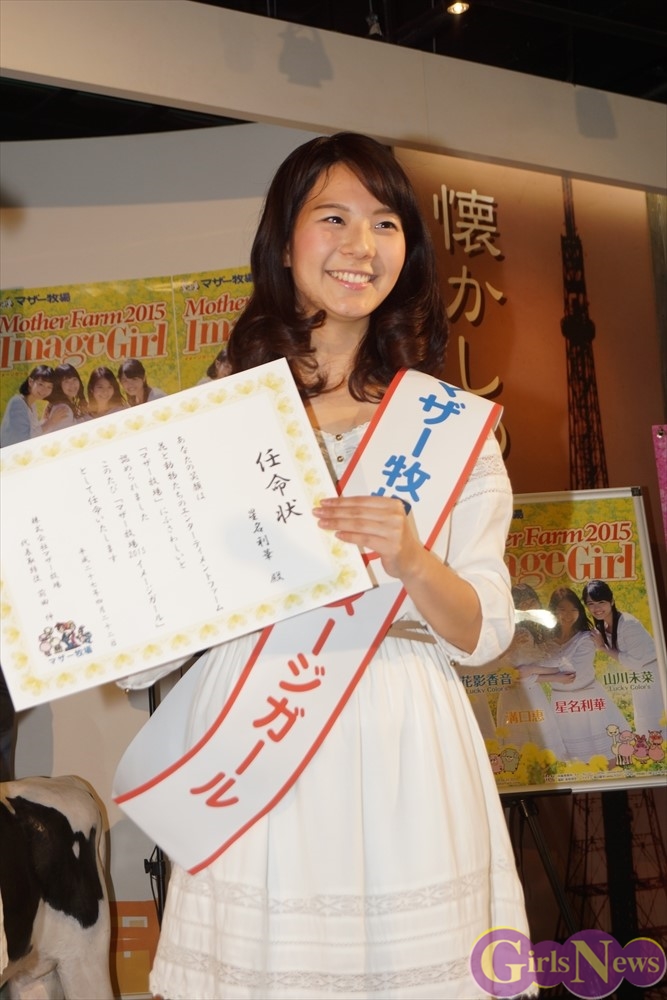 星名利華さんは「マザー牧場にプライベートで行ったことがあって、初めて心から本当にリラックスした場所だったので、イメージガールになることができてとても嬉しく思ってます。マザー牧場に初めて来られる方に魅力をもっともっと伝えていけるように頑張っていきたいと思います。」とそれぞれ感想をコメント。