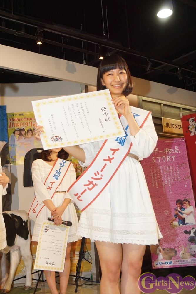 花影香音さんは「今回は4人ということで活動の幅が広がるのかなと思います。もっともっとマザー牧場に足を運んでもらえるように一生懸命頑張りますのでよろしくお願いします。」