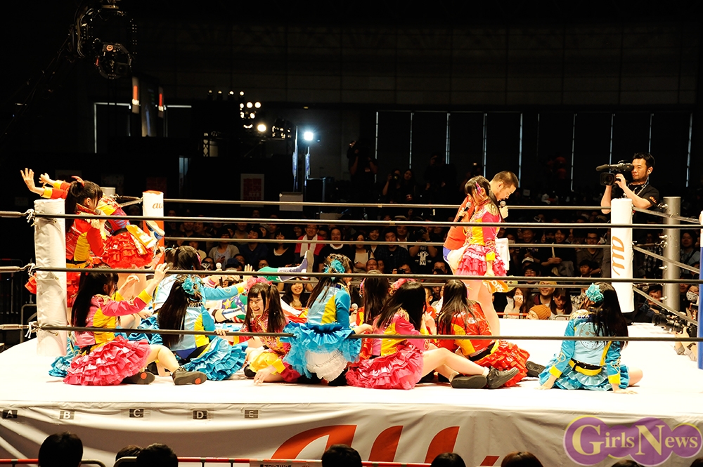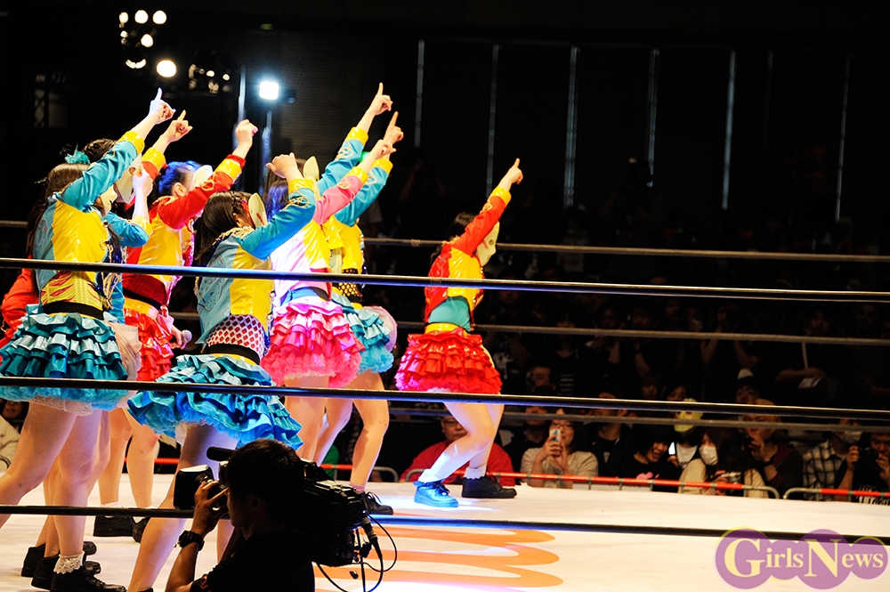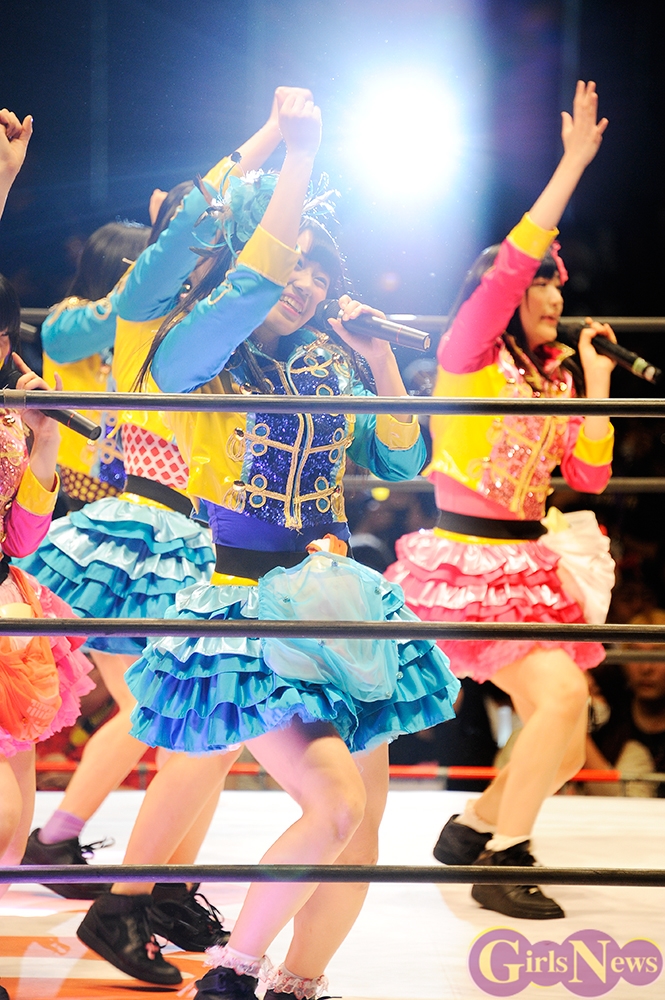 「It’s show time!!」の声でメンバーがリングへと駆け込み『全開☆ヒーロー』からライブへと突入する。6人の新メンバーの初ステージでもあり、ボルテージをさらに上げてゆく。