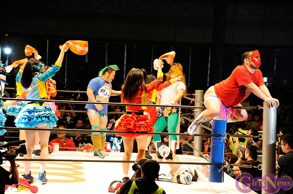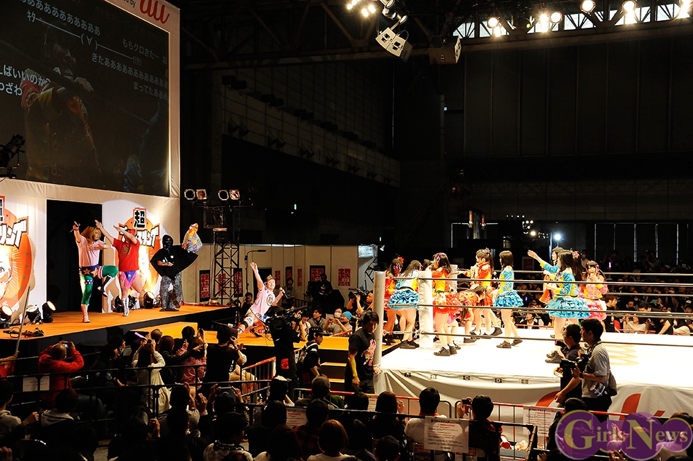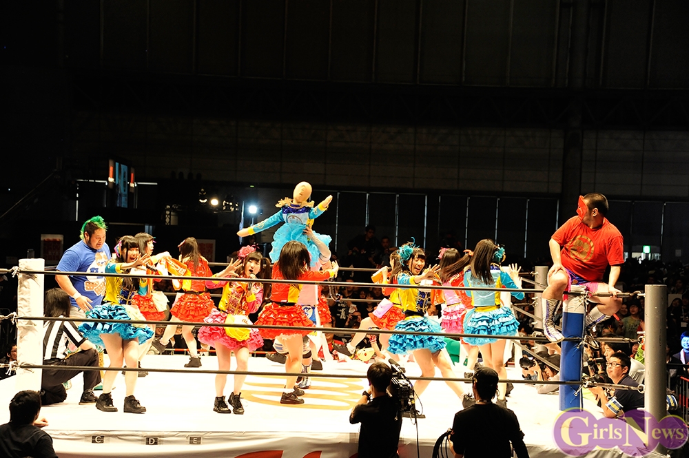 4月26日、幕張メッセにて開催されたニコニコ超会議の超プロレスリング、第4試合にて「アイドルプロレス 仮面女子 vs ほもいろクローバーZ」の試合が行われた。