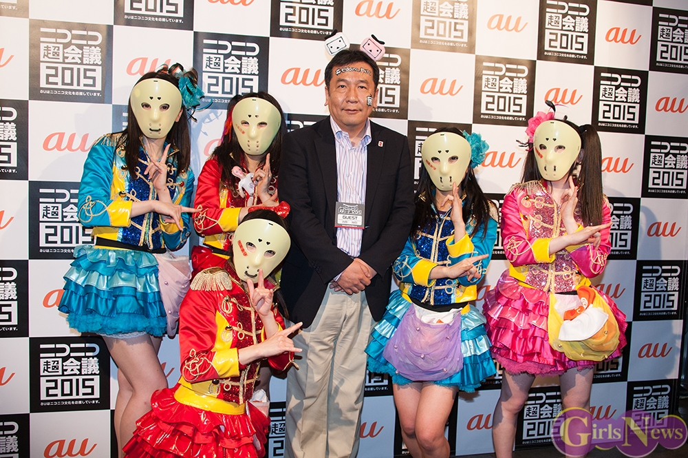 最後には取材も一段落という所で会場に訪れていた枝野幸男が顔を出し、応援しているという仮面女子に励ましの一言を添え、場を和ませた。