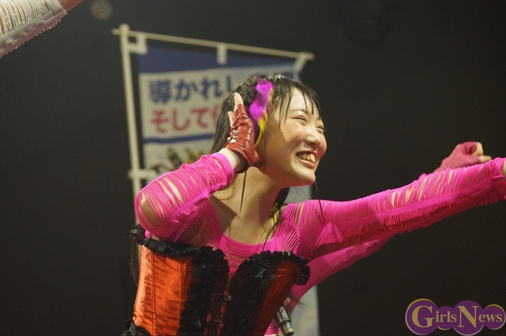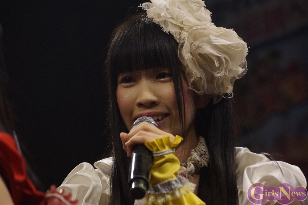 百瀬ひとみ(新メンバー):今日はデビューで緊張したんですけど、楽しそうに踊ってるのがみんなに伝わるようなライブが最初からできたので、見てる人を楽しい気分にさせたいなと思いました。もっともっと上達して成長していきたいです。