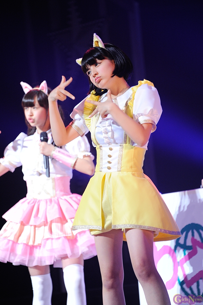 わ→すたが掲げる海外へのポップカルチャー輸出という目標は、既にCheeky Paradeが先鞭をつけているテーマでもある。昨年はスパガですら成し遂げていない米国・NYでのライブ出演を果たし、大きな話題を呼んだ。さらに言えば、ストリート生からのユニット結成という道は彼女たちが切り開いたものだ。スパガの憎めない妹分から、後輩が足跡を追う”お姉さん”の顔をのぞかせるようになったチキパ。しかし、この日は新曲「M.O.N.ST@R」を交えた全5曲で、その小生意気さ・攻撃的さの健在っぷりをいかんなく発揮した。この日はMCでも大活躍を見せたチキパ。訪れた観客に、アイストでの存在感を改めてアピールする一日となった。