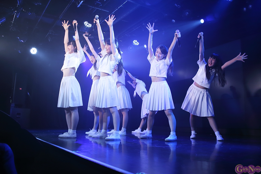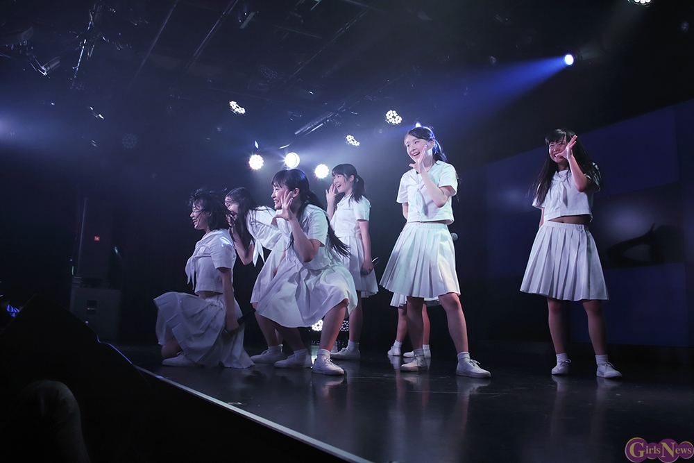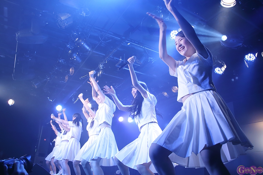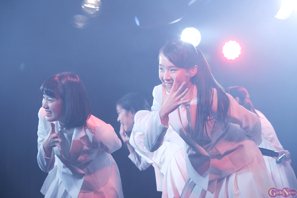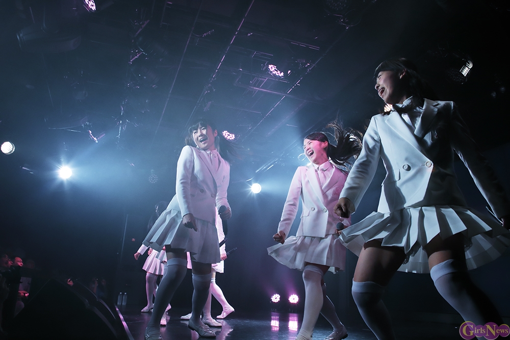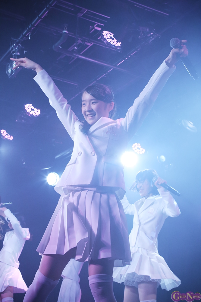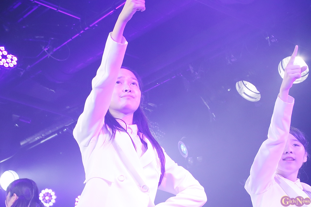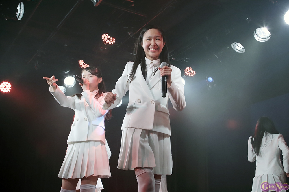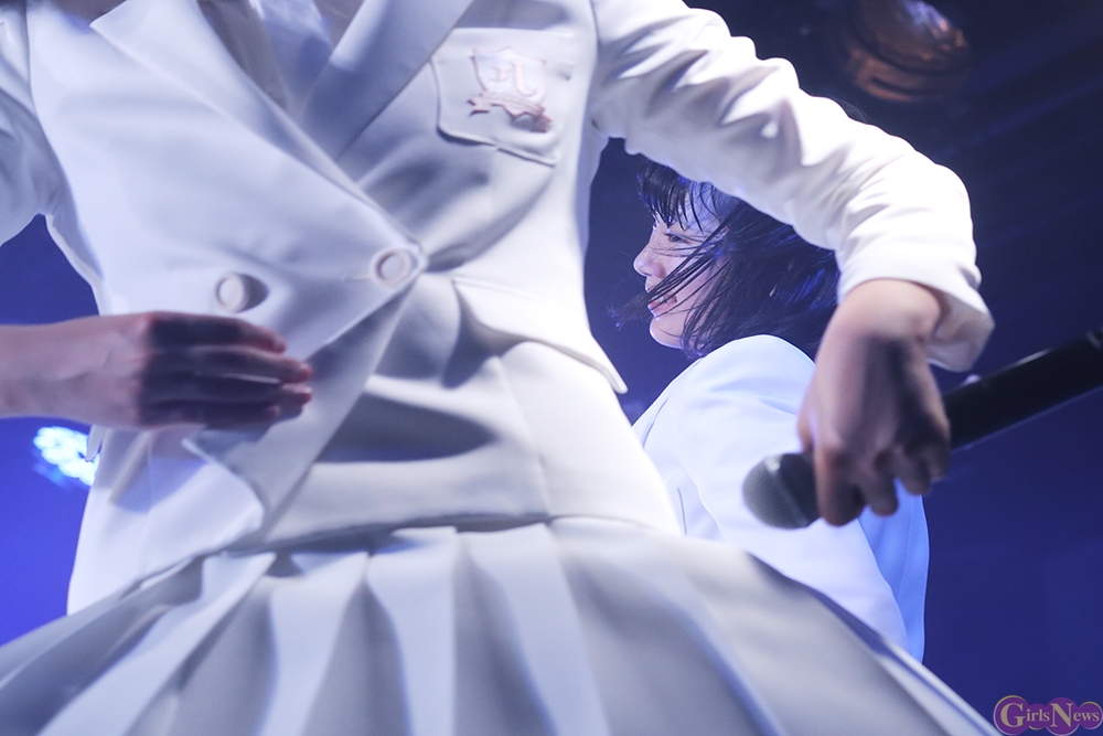 ジリリリと目覚ましの音から『どかーん』と一発、景気よく現れた姿は初期に着用していた真っ白いセーラー服衣装。観客から「おお!」という声が上がる中『Secret Love Story』。「私たち今日で一周年♪」とラストのハモリをニコニコしながらに、続く『テレフォンNO.1』をキュートにパフォーマンス。