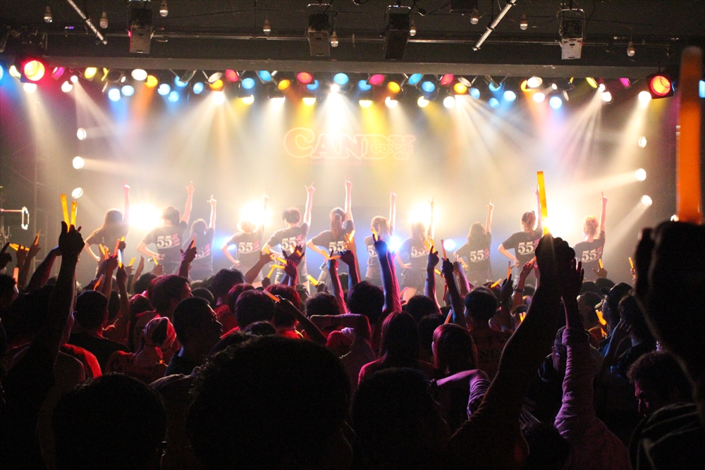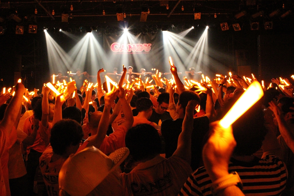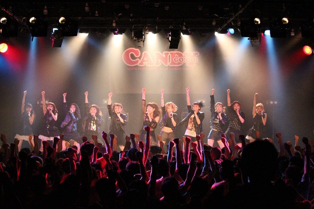 この日は、本編を前編と後編に分けて展開。前編では、11人編成のもと、『ファンファーレ』やLINDBERGの『今すぐKISS ME』のカバーを激しさを持って歌えば、正規メンバー8人で『イミシ ン』や『JACK』『ナミダノカケラ』を通し、場内に熱気を導き出していた。他にも、研修生(五十嵐夏実/羽鳥紗希/宍戸桃子)の3人が、持ち前の明るさ全開で『Forever~あなたのとこへ~』を歌えば、CANDY GO!GO!の若手メンバーを中心に結成された道玄坂上り隊(円田はるか/磯野未来/高城しおり/三浦裕子)が、『道玄坂ラリアット』を明るくパワフルに歌い、お姉さんチームの4人(関根ゆみ/佐伯かな/なぎさりん/菜月アイル)が、温かな歌声を魅力にバラード『l’ll never be alone』を心に染み渡るように歌いあげてゆく場面も登場。CANDY GO!GO!のライブを定番曲として高い支持を得続けている『おとなの事情』では、総勢11人のメンバーたちの歌に合わせ、観客たちも腹の底から声を張り上げ、一体化してゆく場面を作りあげていた。