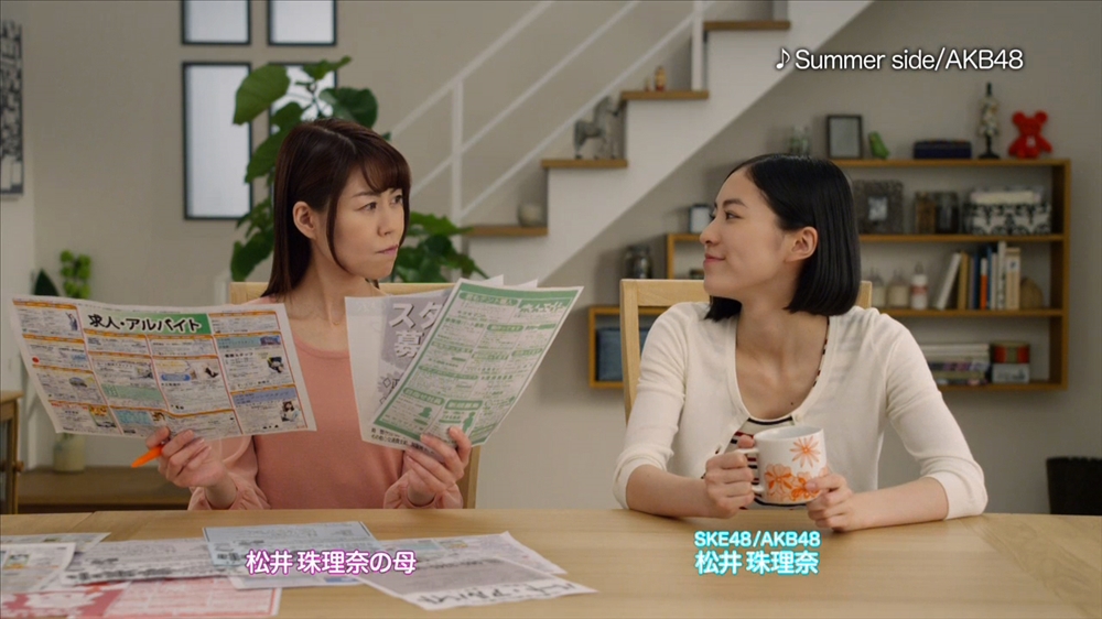 この日、松井珠理奈親子はバイトルの新CMの完成バージョンを初めて見るそうで、仲睦まじそうに完成した新CMを見ていた。