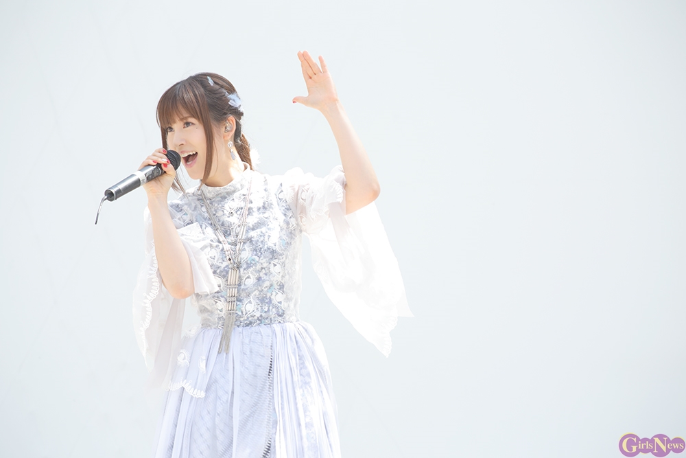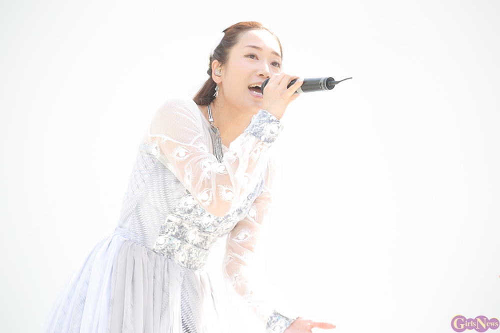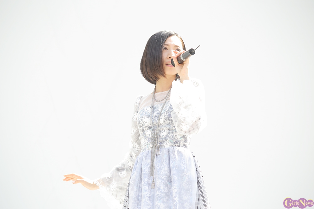 イベントスタートとなるとすばやくステージに現れ、ニューシングルのタイトル曲でもある「Fate/stay night [Unlimited BladeWorks]」 2ndシーズンエンディングテーマ『ring your bell』を披露。