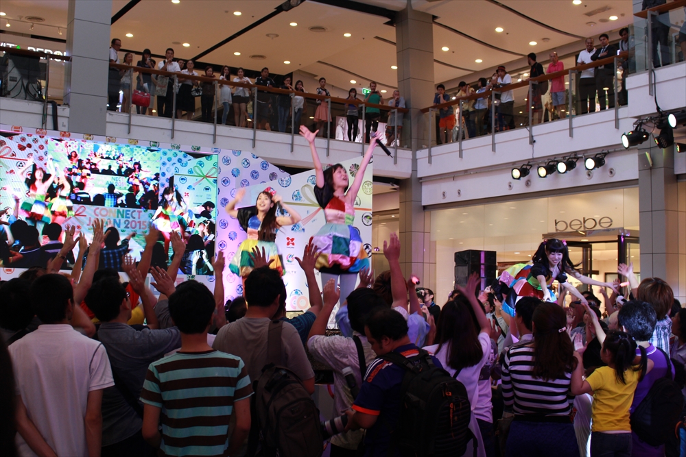 アイドル達の楽曲に合いの手を入れる人々や、日本のアイドルを珍しそうに写真に収める人々などでステージ周辺には人が溢れかえる事態となりました。