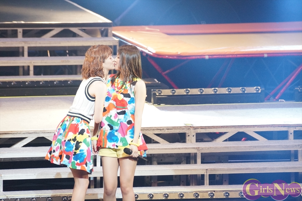 『全力バンザーイ!My Glory』でプロがトランポリンで宙を舞い、テンションも最高潮に高まると『乙女!Be Ambitious!』では、思わず岡田ロビン翔子が秋山ゆりかにキスする場面も。