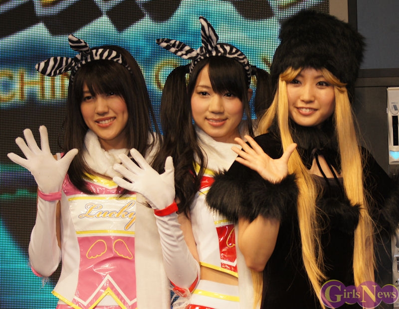 6月22日、ぱちんこメーカー京楽産業の新機種「びっくりぱちんこ 銀河鉄道999」の特別先行展示会が都内で行われ、ゼブラ天使(エンジェル) キュインキュイ~ンとして活動しているアイドルグループ SKE48の平田璃香子・高田志織・古川愛李の3人が参加。