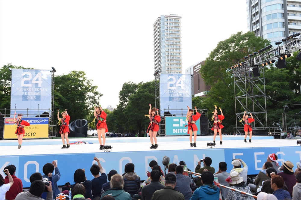6月12日、北海道・札幌大通公園にて開催中の「第24回 YOSAKOIソーラン祭り」のメインステージにアップアップガールズ(仮)が出演し、熱狂的なパフォーマンスを繰り広げてイベントに華を添えた。