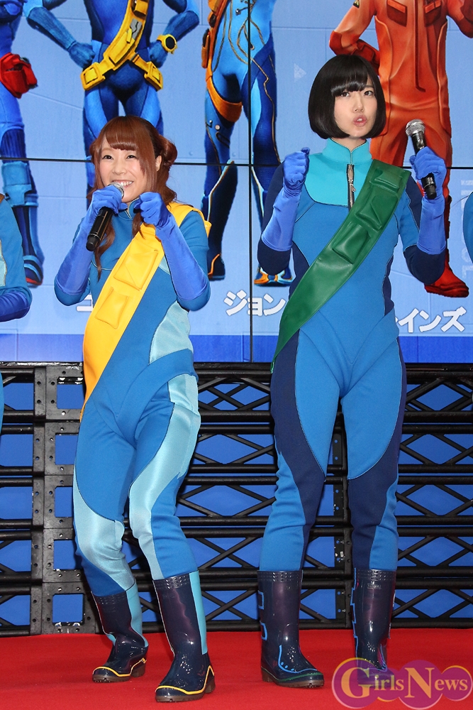 色分けキャラクターの元祖とも言えるサンダーバードにちなんで、それぞれのイメージカラーに沿った隊員服のコスプレで登場したでんぱ組.incの6人は、「強くなったみたい!」とご満悦だった。