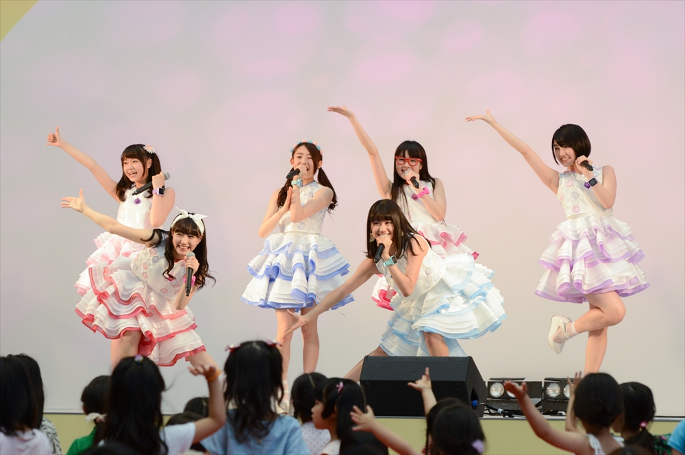 マジカル☆どりーみんが登場したセンターステージにはたくさんの子供たちとその親御さんが集まり満員御礼状態。途中のトークパートではパパイヤ鈴木さんが振付けしてくれたこの楽曲の振付け講座もメンバー自らが行い、その場にいた大人も子供も熱心にそのフリを覚えて一緒に唄とダンスを楽しんだ。「小さい子供たちが一緒に踊ってくれてとっても楽しかったです」(村上来渚) 「お子さんも私たちのファンの大人の人たちもいろんな人が声援を送ってくれて嬉しかったです」(長尾真実)