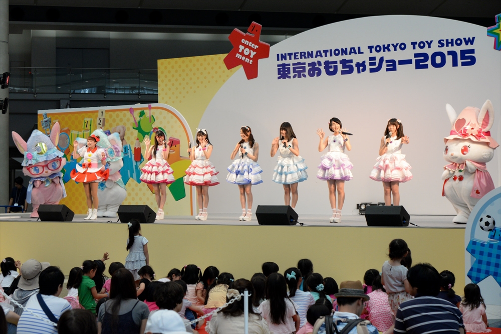東京おもちゃショー2015に登場し、彼女たちが唄うアニメ「ジュエルペット マジカルチェンジ」(テレビ東京系毎週土曜9:30~)のオープニングテーマ、「マジカル☆チェンジ」を初めて一般のお客さんの前で披露した。