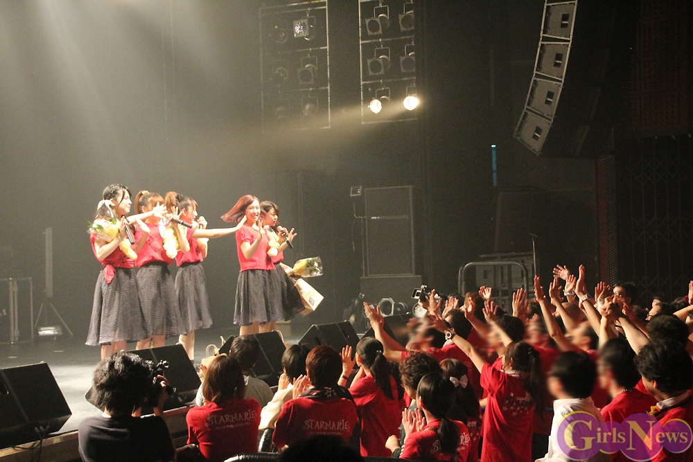 続いて、のんちゃんは「初期の4人で活動していた時は、このO-EASTでワンマンライブができるなんて夢のことだったのが、今日で3年目のワンマンライブです。7年やってきて、ここまで来れたかと思うと本当に嬉しい。3人で活動してた頃は、他のアイドルさんが売れて、どんどん抜かされいくのを見て、自分たちのことを踏み台にされていく“踏みドル”って呼んでた。だけど、3人が入ったおかげで、またO-EASTでライブが出来るようになって、アジアツアーが決まってからは、“もう踏みドルなんて言ってられないな”と思えるようになった。3人のStarmarieが望は本当に大好きだったから、辞めようと思ったこともあったけど、この5人になって、これが本当のSTARMARIEだと自信を持って言えるようになった。それは…」と言いかけて、のんちゃんは唐突に泣きだした。
