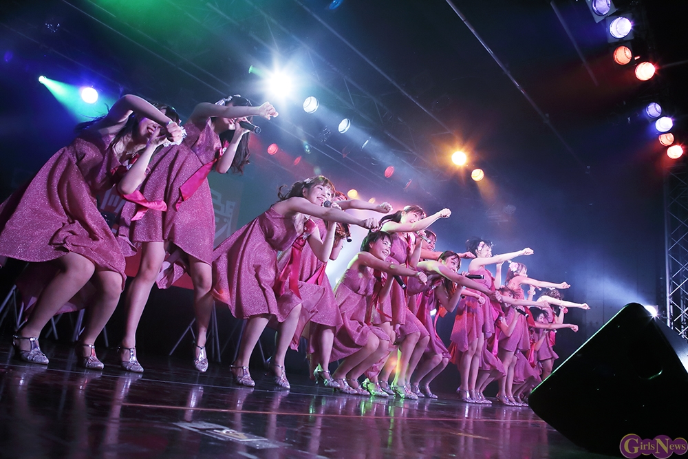 他にも苦労話の流れで「朝倉ゆりちゃんが夜中にキレだしたり。」で本人から訂正が入ったり、一生懸命なメンバーを褒めようと「一人もテキトーな子はいない。」と言うと客席から楠ゆい自身だと指摘が入り「あ、私テキトーだわ。私以外ね。」と笑い。