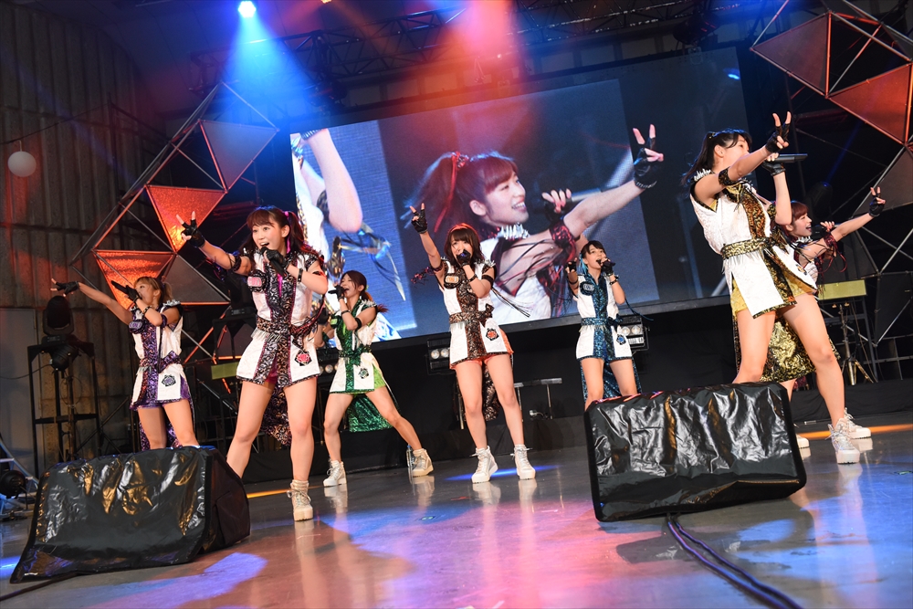 夢の時間はアンコールでまだまだ続く。アンコール1曲目は「サイリウム」。暗闇に光る無数のサイリウムは、まさに「揺れる光、夢の時間、カラフルな世界の真ん中で」のフレーズそのまま。この光景を見て曲中思わず言葉に詰まってしまった関根梓さんは、「こんなに素敵な空間をもっともっと拡大していって、もっともっと素敵な夢を皆さんにお届けしたいなと思いました」と新たな夢へ思いを膨らませていた。そして、最後は「サマービーム!」で締めくくり。「暑いなら水着になればいいじゃん!」の掛け声とともにサプライズでビキニ姿となったメンバーが水鉄砲を手に客席に降り、祭りのクライマックスをファンとともに楽しんだ。