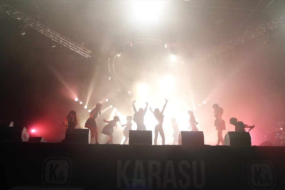 2つ目は、JAPANEXPO最大の収容を誇る『KARASUステージ』(8,000人収容)最終日でオオトリを務めた。人気歌手・藍井エイルさんが歌い終わった後のLIVEである。