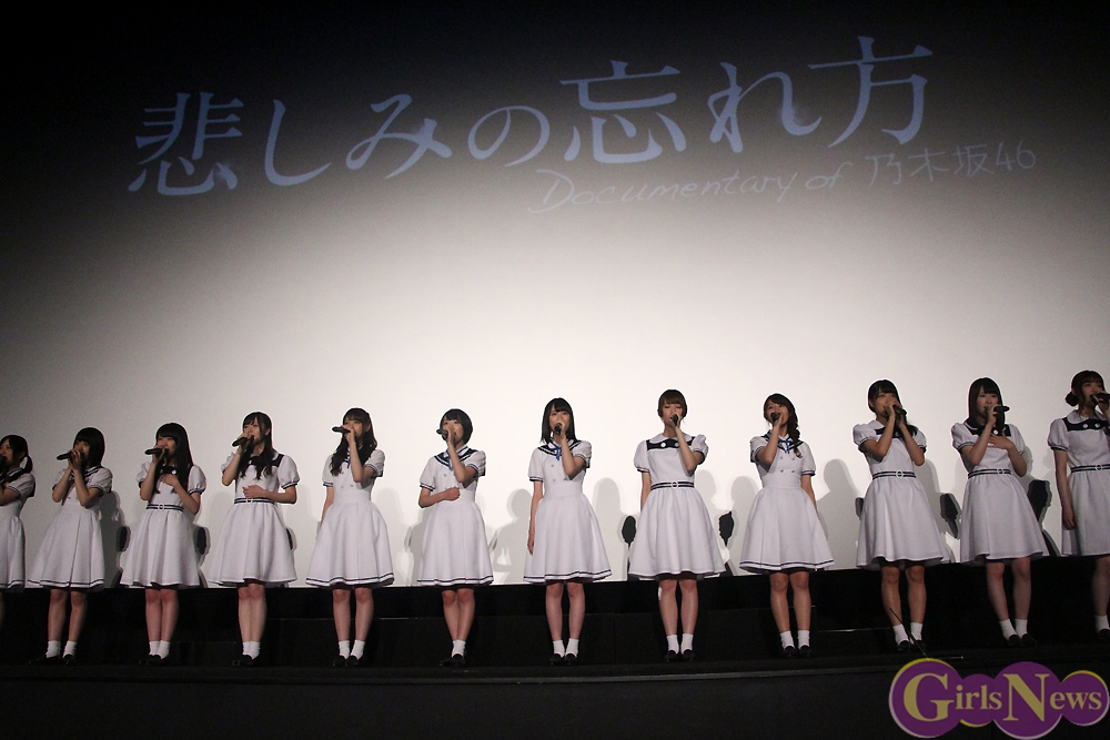 7月10日、乃木坂46のドキュメンタリー映画「悲しみの忘れ方 Documentary of 乃木坂46」が公開初日を迎え、お台場シネマメディアージュで行われた舞台挨拶に白石麻衣・西野七瀬・生駒里奈・生田絵梨花・橋本奈々未・桜井玲香・星野みなみ・若月佑美・秋元真夏・深川麻衣・高山一実・松村沙友理の12名と丸山健志監督が登壇した。