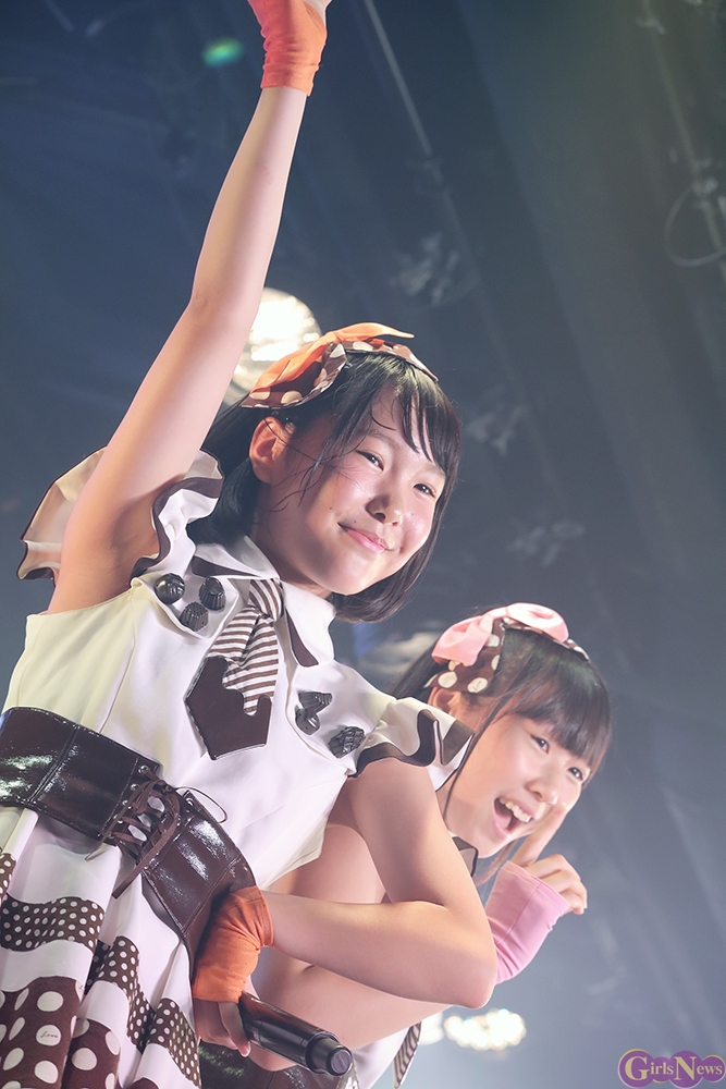 シリアスな世界観から一転、元気で明るい笑顔で登場したのは関西発中高生ガールズユニットchoco☆milQ。テアトルアカデミーからの「笑顔届け隊」として勢いよくステージを駆け回る。