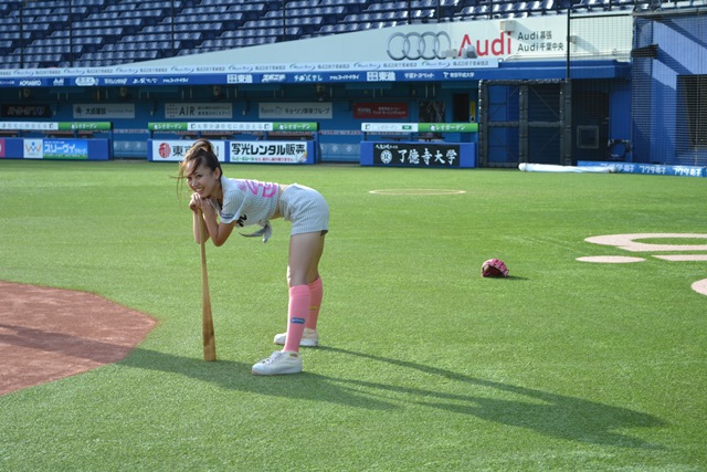 もちろん撮影場所は彼女たちの“ホームグランド”でもあるQVCマリンフィールドで行われ、撮影は朝8時から始まり、東京湾の日没シーン撮影まで約12時間行われた。