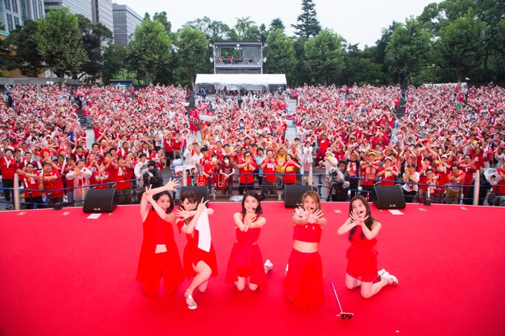 約3年ぶりの野音は、『HAPPY 7 DAYS』[2015年6月17日(水)リリース]のテーマカラーの赤に身を包んだ約2,600人のファンで、赤一色に埋め尽くされた。