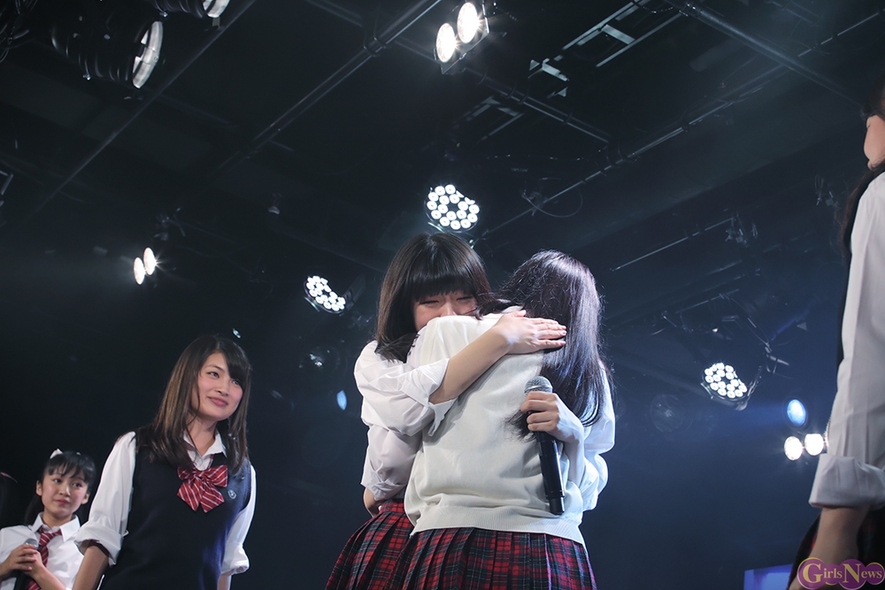 阿部かれんは新メンバーの為、短い期間の付き合い。しかし、大事な妹を支えるように一際しっかりと抱きしめる門前亜里。