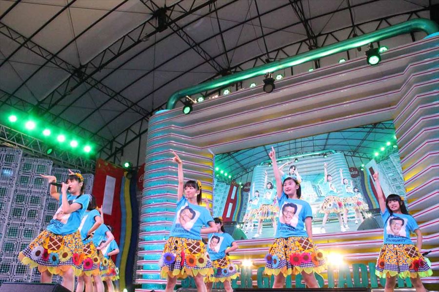 「めざましライブ」への出演はメジャーデビューを果たした2012年以来4年連続の出演。初回出演時より毎年「めざましテレビ」アナウンサー・軽部真一氏の顔をあしらったオリジナルT-Shirtsを着用してきた彼女たちだが、やはり今年も期待通りに<軽部T-Shirts>で登場。