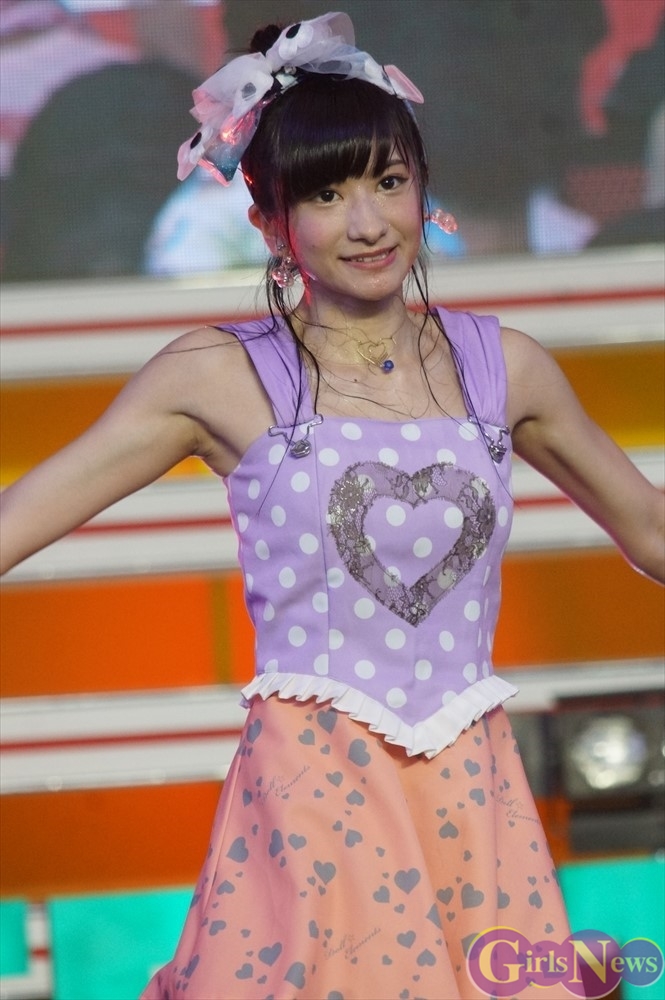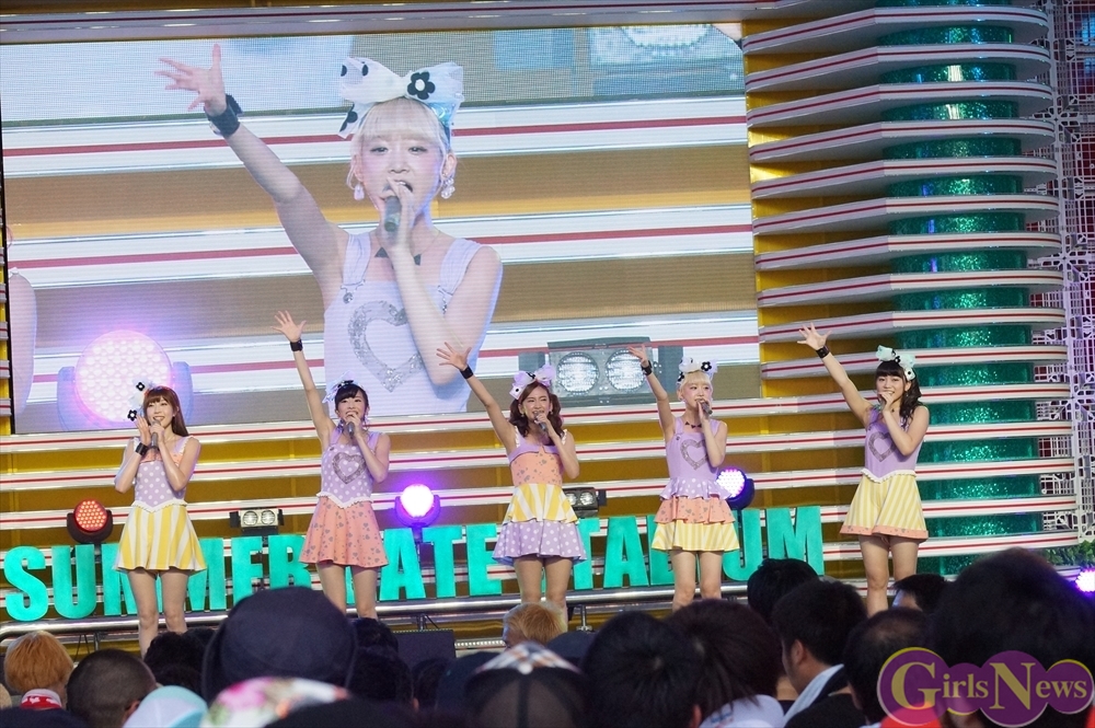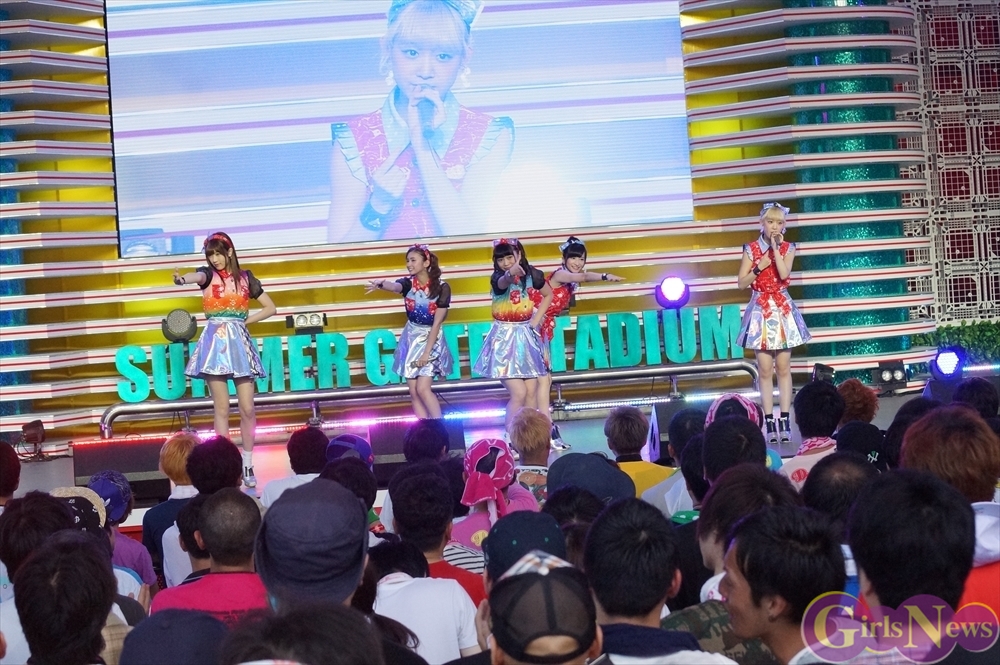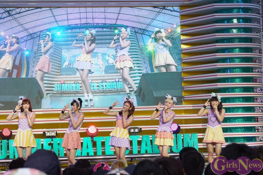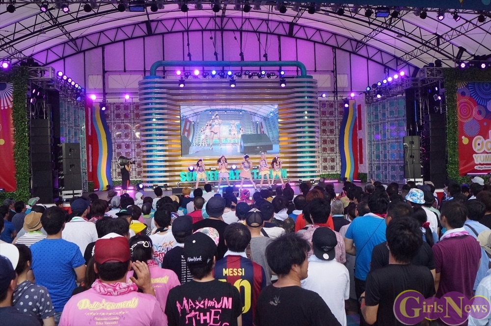 日が傾き始めても、まだまだ厳しい日差しが照りつける会場。そんな熱さに負けないキュートな5人がovertureの後に登場すると、会場からは大きな声援が上がった。ライブは全5曲。「君のオモイ届けたい」で会場をクラップとコールで包むと、続く「LOVE ME DO」からはキュートなパジャマ風衣装にチェンジ。さらに自分たちの”武器”をアピールし、ファンのボルテージを高めた。後半は「君のネガイ叶えたい!」「Judgment」などをパフォーマンス。最後まで集まった観客たちをどるえれワールドへと誘い、無事に2回目のHOT STAGEを終えた。