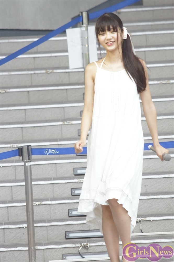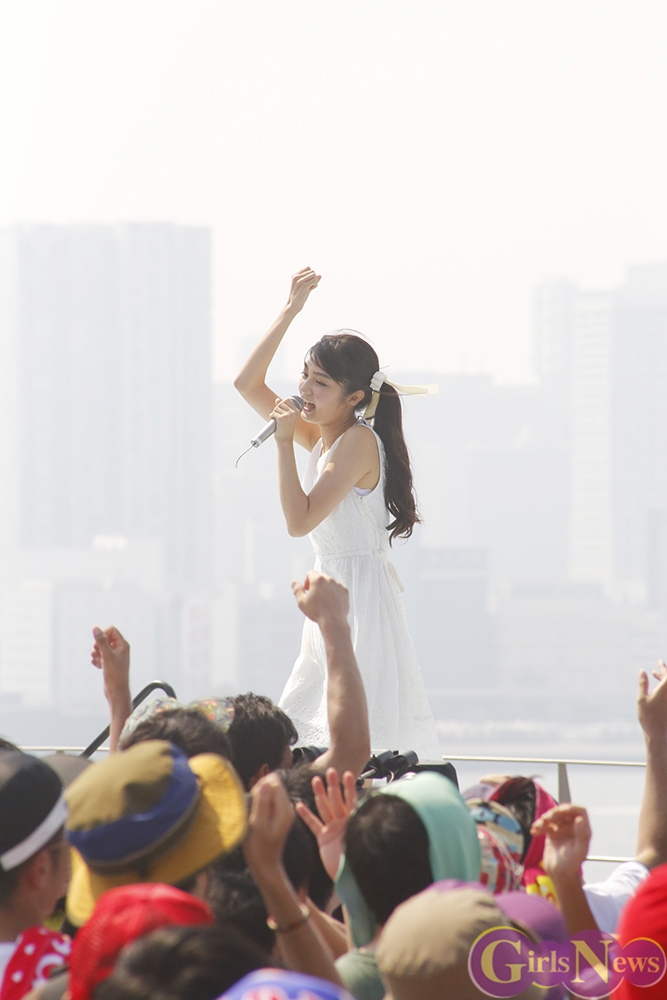 昨年夏に、AKIBAカルチャーズ劇場での企画から誕生したハコイリ♡ムスメ(以下ハコムス)。1年間の努力が実り、ついに今年はアイドルの憧れ・TIFへの出演を決めた。いつものチェックのロングスカートとは一味違う、白を基調とした夏らしいさわやかな衣装で臨んだことからも、7人のTIFへの思いが伺えた。