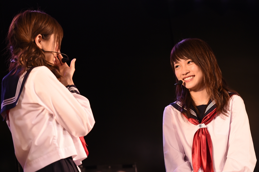 “りっちゃん”コールが起こる中、幕が上がった卒業。1曲目「長い光」から同期の小嶋菜月は瞳を潤ませ、2曲「スコールの間に」では島崎遥香が涙を流しうつむく場面も。それとは対照的に川栄は、MC コーナーで気合を入れてきたという中西智代梨のメイクを「ヤマンバみたい」といじるなど、いつもと変わらない様子でした。