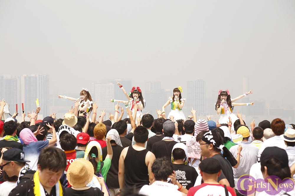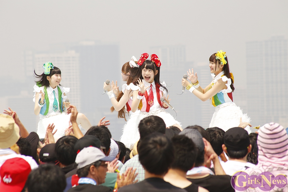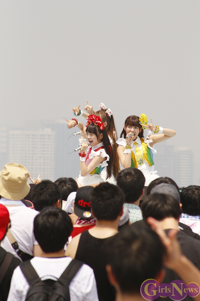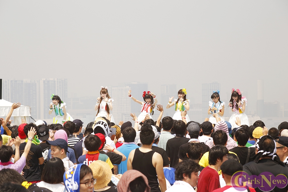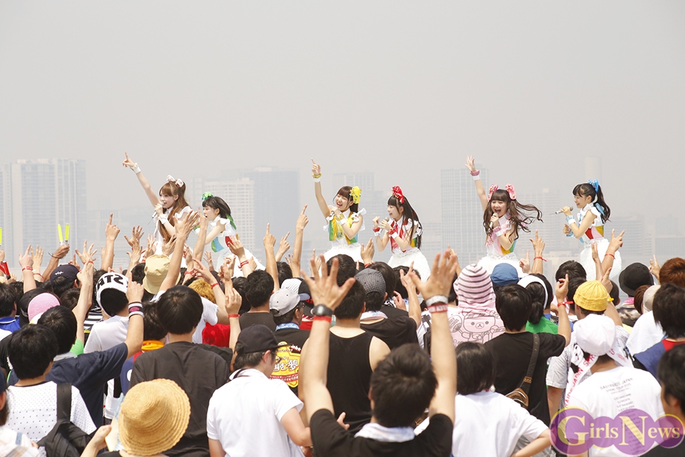 HOT STAGEはTIF(東京アイドルフェスティバル)の観客だけではなく、お台場大陸に遊びに来た人たちにも幅広く知ってもらえる機会とあってこの曲を組み込んだのは正解と言えるだろう。