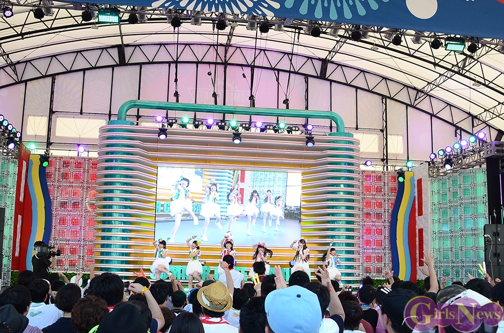 ジェットコースターのようにクルクルと曲調が変化するのが魅力的な「2学期デビュー大作戦!!!」では客席も一体となって振付を真似したり、メンバーがステージを縦横無尽に動き回り、この季節にピッタリのサマーソング「キミとピーカン NATSU宣言っ!!!」でも勢いはそのままに会場を盛り上げた。