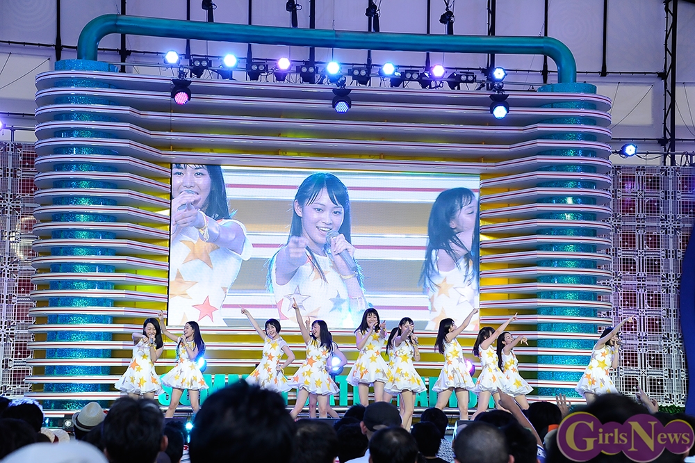 白を基調としたワンピースに星柄があしらわれた夏らしい衣装で登場したX21はファーストアルバムのタイトルにもなっている「少女X」、「ハッピーアプリ」を披露すると「まだまだ声出せますかー!?」という煽りとともに「席替えウインク」、「恋する夏!」など夏らしいセットリストを披露し、ワンピースの裾をヒラヒラとなびかせる姿がとても涼しげな印象。