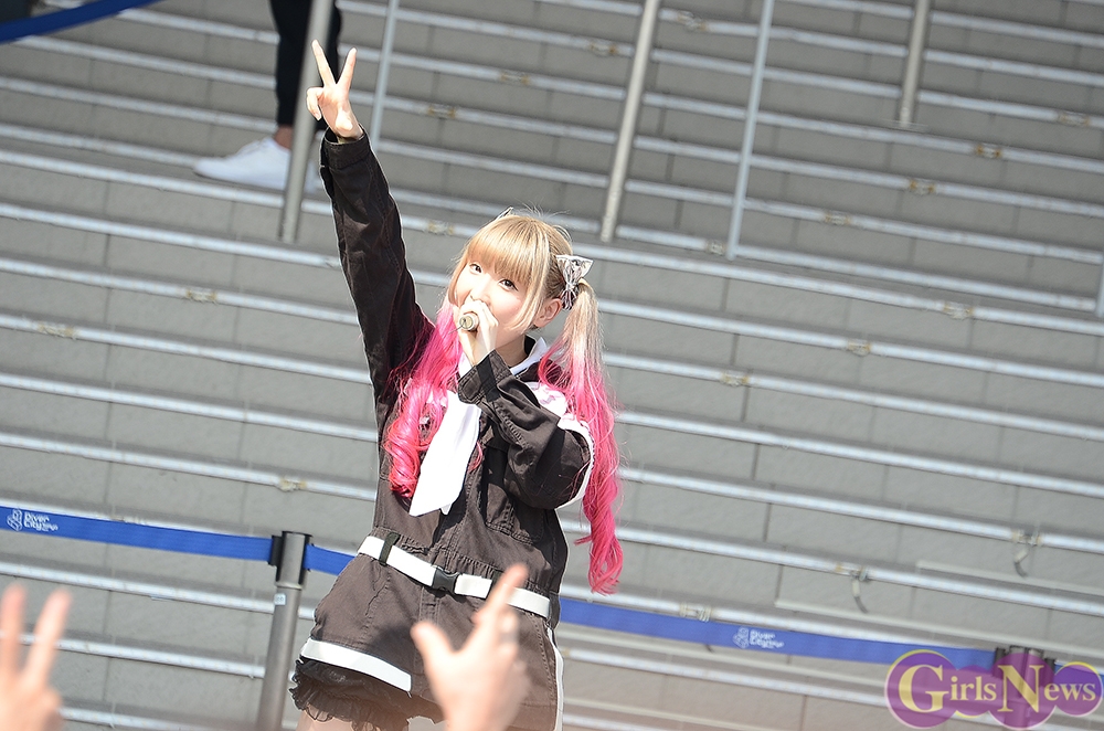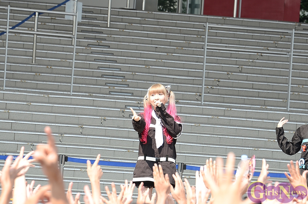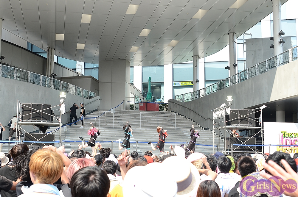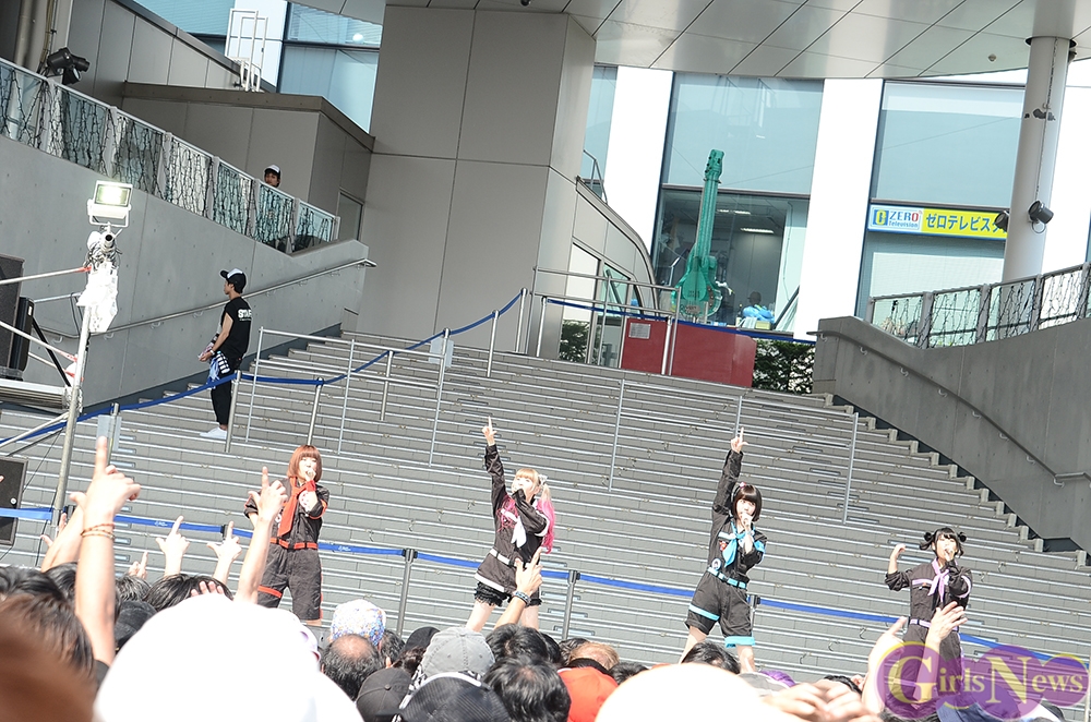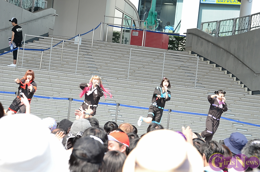 8月1日、東京・お台場で「東京アイドルフェスティバル 2015」が開催され、実物大ガンダムの目の前に設置されたFESTIVAL STAGEにゆるめるモ!が登場した。