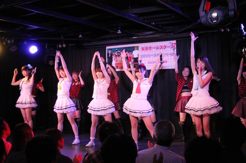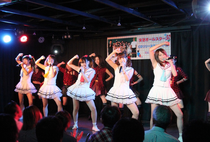 女塾オールスターズは、お笑いコンビ「2700」の八十島がプロデュースを手掛けるユニットで、元AKB48浦野一美、元SDN48光上せあら、穐田和恵、尻無浜冴美、アフィリア・サーガのミク、アキシブProjectの荒川優那、船木沙織、ヒューマンビートボクサー、36歳グラドル、パチンコアイドルなど、元アイドルと現役アイドルからアーティストまでの12名で構成。8月1日のTIF2015にも出演したユニット。