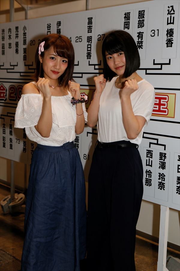 唯一NGT48からの参戦となる西潟茉莉奈は緊張のくじ引きとなったが、「NGT48を背負っていますので、目標を高く持って頑張ります。NGT48は衣装がまだないので、本戦はNGT48の衣装で参加したいです」と意気込みを語った(1回戦対戦相手:田北香世子)。
