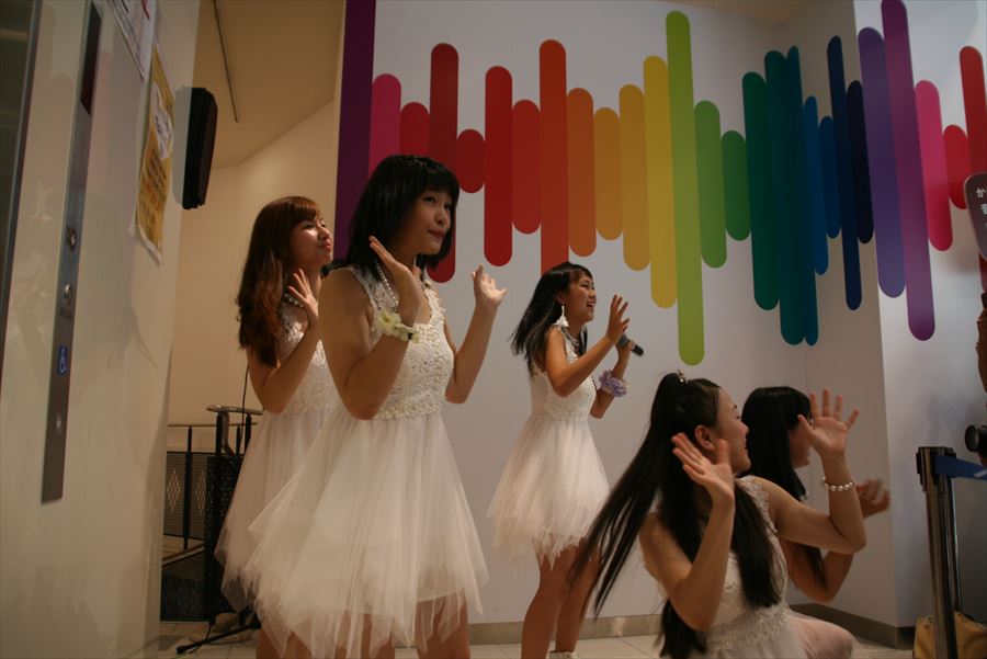 そして、14:00からライブもスタート。総勢12組、約5時間半に及ぶイベントがスタートした。白の衣装が美しい「Culumi」アクティブなパフォーマンスがかっこいい「SweetSurrender」ONE DJを含むアイドル「キテレツ倶楽部」はコミカルながら、壺を得たパフォーマンス、伸びのある声がさすが宝塚!!な「彩羽真矢」と続く。