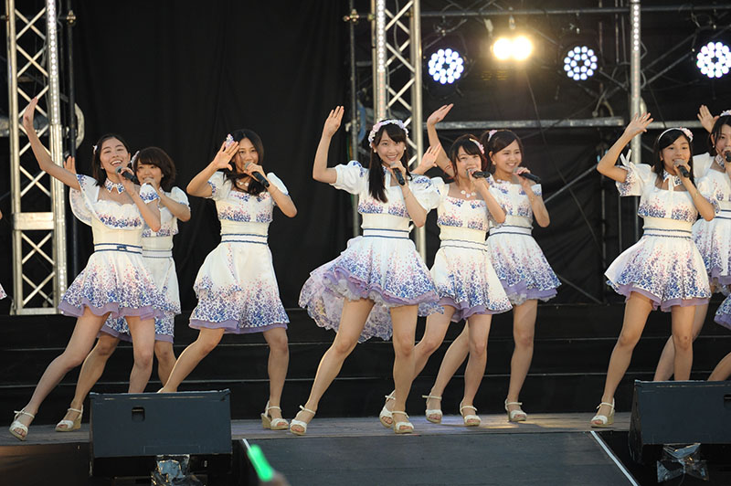 8月13日、今週発売したニューシングル「前のめり」がオリコン1位と好調の滑り出しを見せているSKE48が愛知県小野浦海水浴場で開催した美浜海遊祭でライブをおこなった。