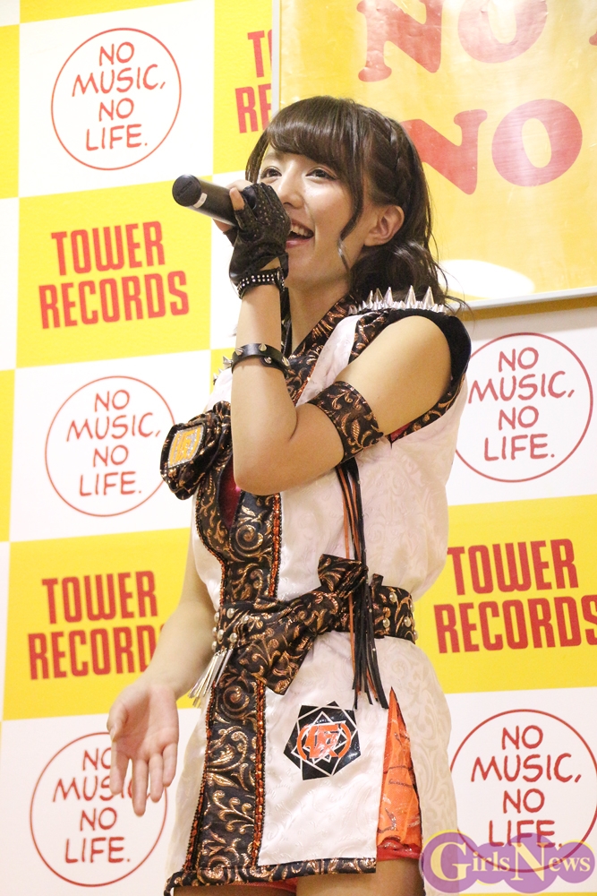 イベントは、CDシングルではなくライブDVD付属のミュージックカード聞くことができる新曲でツアーのキラーチューンとも言える「アッパーレー」でスタート。店舗内のスペースながらお祭りのような賑いで一気に会場を盛り上げた。佐藤綾乃さんは、「まだ買ってない人も観たら絶対にDVDが欲しくなるライブにします!ツアーの初日にあったような熱さを皆さんに届けたい。ミニ47都道府県ツアーをここで今お見せします!」と意気込みをみせた。