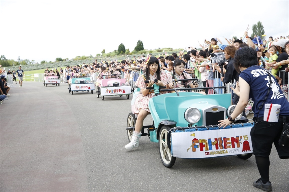 『ファミえん』は遠足をテーマに行われる野外ワンマンコンサートとして、2013年に<河口湖ステラシアター>にて初開催。翌2014年は<山中湖交流プラザ“きらら”シアターひびき>で行われたが、今年は越後丘陵公園(新潟県長岡市)という広大な国営公園の中での実施となった。