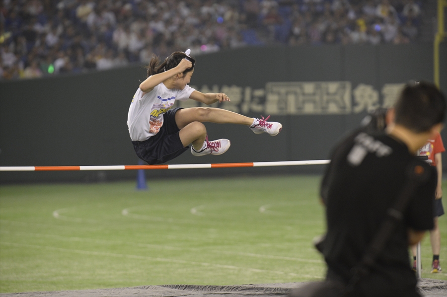 「走り高跳び」では、熊沢世莉奈(チームKIV)らが鮮やかな背面跳びを見せる中、変則的な跳び方ながらも驚異の跳躍力を見せた中野郁海(チーム8)が120cmの記録で優勝。跳躍する際には会場から手拍子も送られ、さながら陸上の世界大会の会場のようだった。