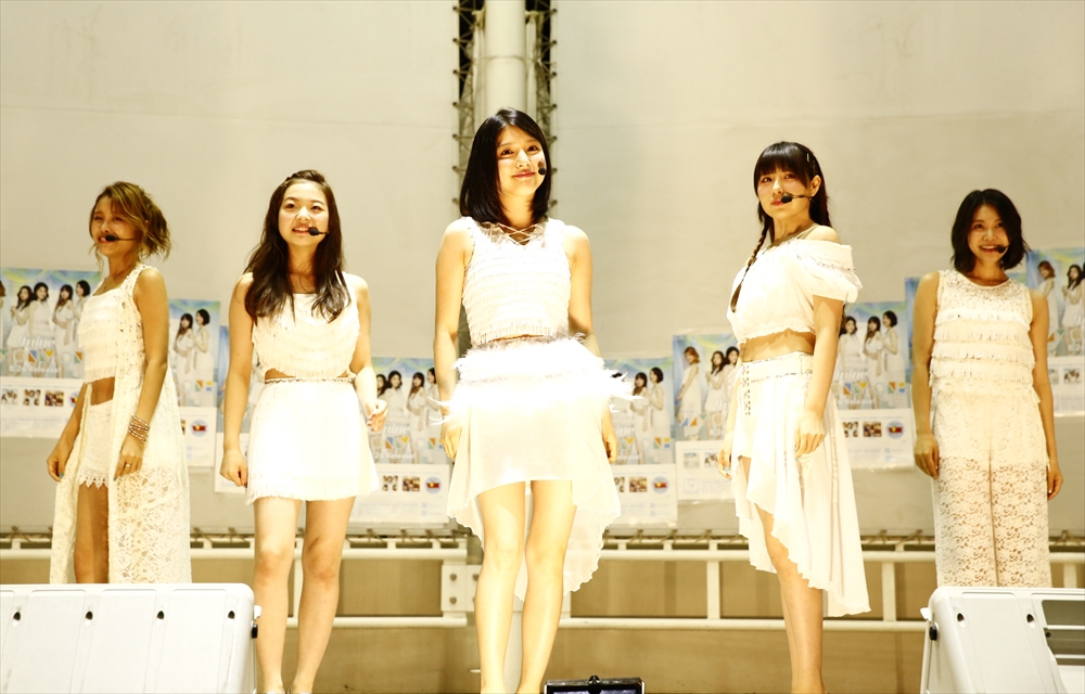 1曲目に前作『HAPPY 7 DAYS』を披露すると、MCで「今日は発売日ということで、こんなにたくさんの方に集まっていただいてすごく嬉しいです!今作はカップリングも含めて本当に自信作です!」と自信たっぷりに挨拶した。