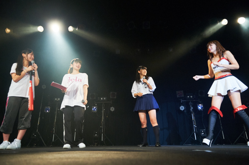 delaの公演で見逃せないのがワンマン限定ユニット、この日も2部はモデルとしても活躍する架乃愛美扮するDJ AIMIのDJパフォーマンスに乗せそれぞれが2人~3人のスペシャルユニットで登場、観客の大きな拍手が沸き起こった後は、dela初代キャプテン犬塚志乃による「SHANDY」のソロバージョンを熱唱。古くからのdelaファンは大歓声を上げてレジェンドを出迎えた。