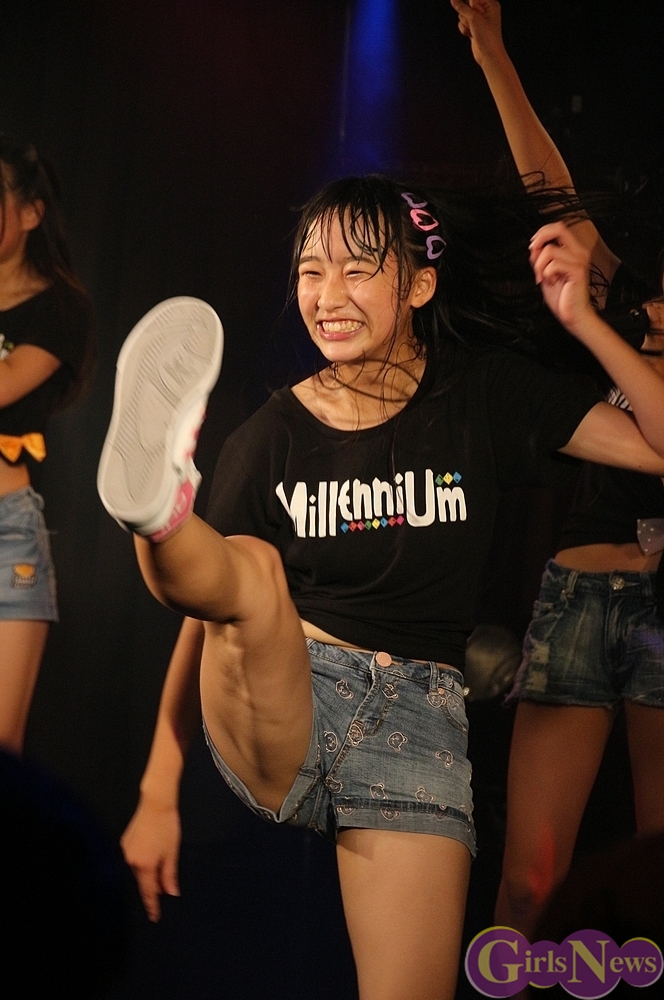 ミレニアムガールズ、そして黒いTシャツの候補生達と交互に曲を重ねていくスタイルで、間髪入れずの叩き込み。会場はそもそもの熱さからさらに熱気を帯びテンションを上げていく。