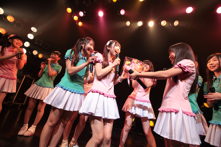 そして、「はぴねす!」では成瀬桃子がアフィリア・サーガに昇格し、Stand-Up! Heartsの成瀬として最後のステージ。メンバーから成瀬へサプライズで花束が贈られた。